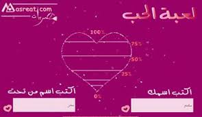 وصف اللعبة : لعبة الحب تعتبر من الالعاب الرائعة جدا فى معرفة مقايس الحب للطرفين ضع اسمك الان فى اول خانة وفى الخانة الاخرى ضع اسم حبيبك او حبيبتك واضغط Test it وانتظر التحميل وسوف تجد نسبة حبك لة اونسبة حبة لك بكل سهولة العاب الحب تعتبر من الالعاب المرحة وخيالية اى انها غير حقيقية .